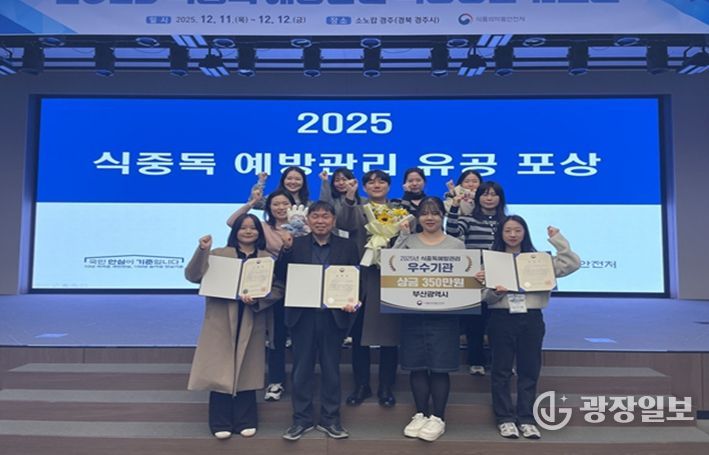 광장일보 주재영 기자 | 부산광역시는 식품의약품안전처가 실시한 2025년 식중독 예방관리 평가에서 우수기관으로 선정돼 지난 12월 12일 식품의약품안전처장 표창을 받았다고 밝혔다.