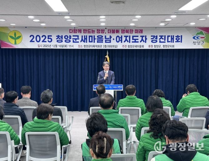 광장일보 주재영 기자 | 청양군새마을회는 16일 ‘2025년 새마을 남녀지도자 경진대회’를 열고, 한 해 동안 지역사회 발전과 봉사활동에 기여한 새마을지도자들을 격려했다.