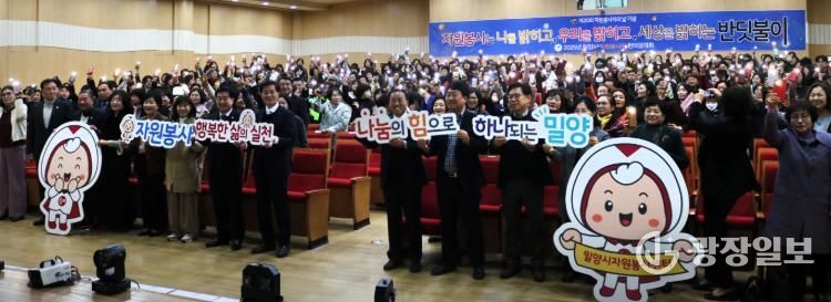 광장일보 주재영 기자 | 밀양시자원봉사단체협의회는 16일 시청 대강당에서 한 해 동안 지역 곳곳에서 헌신해 온 자원봉사자들을 격려하고 화합을 다지는 ‘2025 밀양시 자원봉사자 한마음대회’를 개최했다.