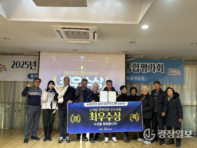 시는 이러한 노력을 통해 올해 △기관상으로 2025년 농촌자원사업 기관 경진대회 대상(장관상)과 농작업 안전 유공상(도지사상)을 △마을·단체상으로 농작업 안전재해 예방사업 중앙 경진대회 우수상(청장상-조은작목반)과 농작업 안전실천 우수사례 충청남도경진대회 최우수상(도지사상-도고오암1리)을 △공무원 유공으로 농작업 안전재해 예방 유공 공무원상(청장상)과 농작업 안전스토리 경진 최우수상(청장상)을 △민간인 유공으로 농촌자원분야 발전 유공상(도지사상)을 받았다.