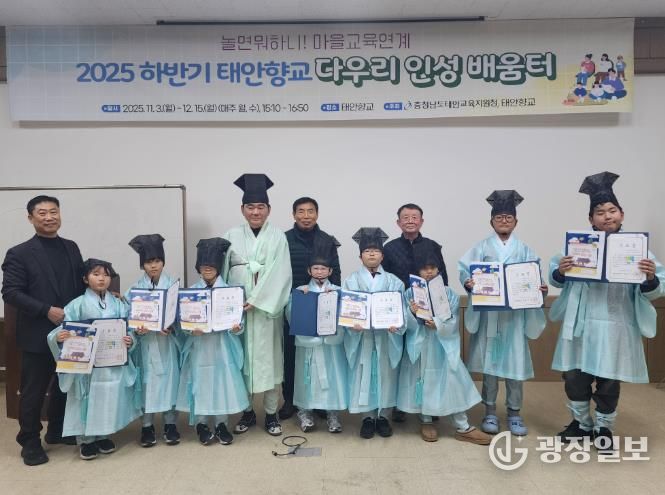 광장일보 주재영 기자 | 충청남도태안교육지원청은 12월 15일 태안향교에서 2025 하반기 마을교육연계 프로그램인 ‘태안향교 다우리 인성배움터’ 종강식을 개최했다.