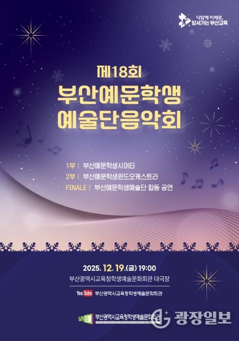 광장일보 주재영 기자 | 부산광역시교육청 학생예술문화회관은 19일 오후 7시 회관 대극장에서 ‘제18회 부산예문학생예술단음악회’를 개최한다.