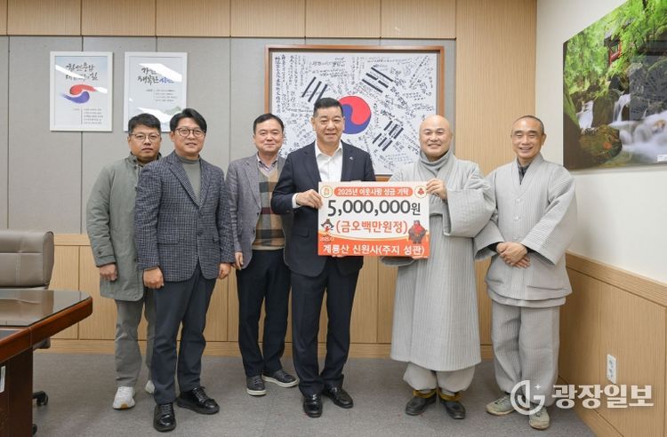 광장일보 주재영 기자 | 공주시는 대한불교조계종 신원사가 지난 16일 시청 상황실에서 이웃돕기 성금 500만 원을 전달했다고 밝혔다.
