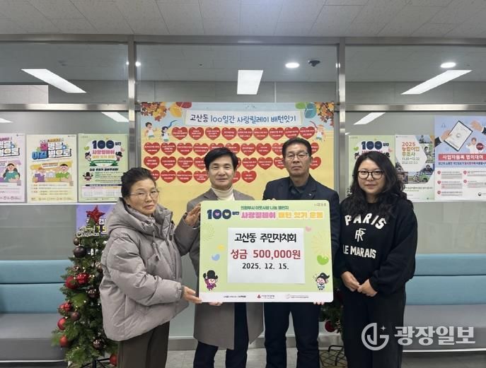 광장일보 주재영 기자 | 의정부시 고산동주민센터는 12월 15일 고산동 주민자치회가 저소득층을 위한 성금 50만 원을 전달하며 ‘100일간 사랑릴레이 배턴 잇기’에 참여했다고 밝혔다.