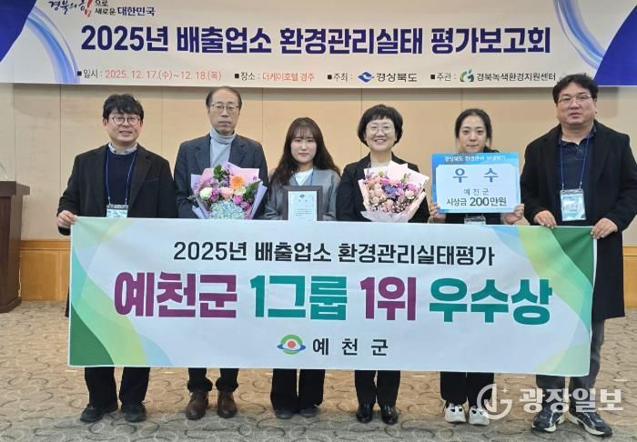 광장일보 주재영 기자 | 예천군은 17일 경주에서 개최된 ‘2025년 배출업소 환경관리실태평가 보고회’에서 1그룹 1위를 수상했다.