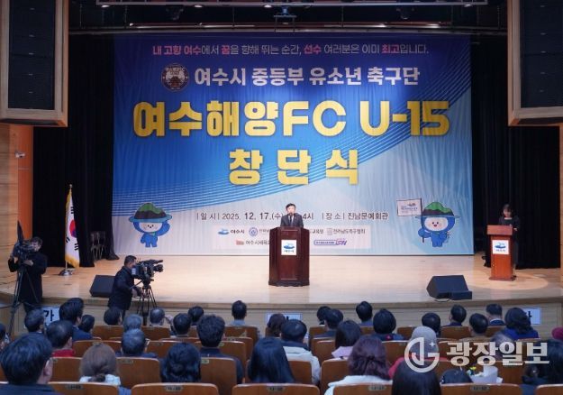 광장일보 주재영 기자 | 여수시는 지난 17일 진남문예회관에서 여수시 중등부 유소년 축구단인 여수해양FC U-15 창단식을 가졌다.
