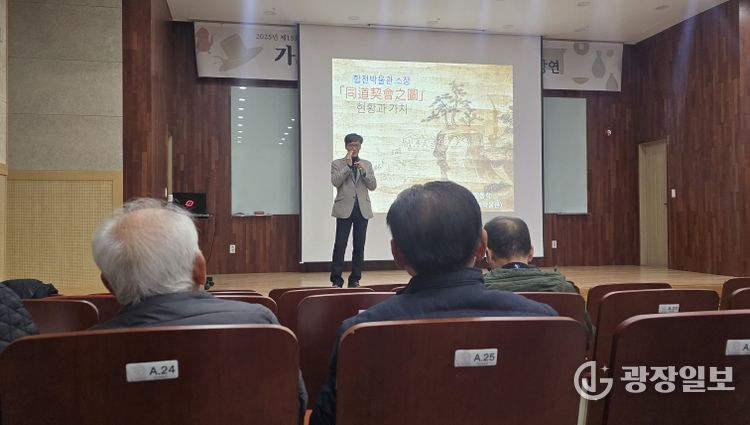 광장일보 주재영 기자 | 합천군 합천박물관은12월 18일, 2025년 제15회 특별기획전 '가보, 모두와 함께 나누다'와 연계한 특별 강연 프로그램의 첫 강연을 성황리에 개최했다고 밝혔다. 이번 특별 강연은 지역의 문중과 단체가 전승해온 가보에 담긴 역사적 의미를 살펴봄과 함께, 전시에 대한 심층 이해를 돕고 지역민에게 폭넓은 문화 향유 기회를 제공하고자 기획됐다.