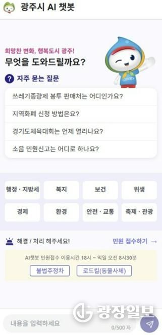광장일보 주재영 기자 | 광주시는 생성형 인공지능(AI) 기술을 활용한 ‘광주시 AI 행정서비스 구축’ 사업을 완료하고 AI 민원 채팅 로봇과 콜봇을 22일부터 시범 운영한다고 19일 밝혔다.