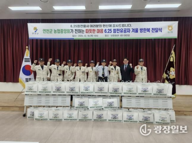 광장일보 주재영 기자 | NH농협 연천군지부는 18일 연천군 보훈회관에서 연천 관내 6.25 참전유공자에 감사와 사랑의 마음을 담은 600만원 상당의 위문품(동절기 방한복)을 전달했다.