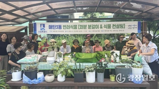 광장일보 나학천 기자 | 지난 28일, 수원특례시 영통구 매탄3동 자유총연맹은 매탄3동의 반려 식물을 키우는 주민을 대상으로 반려 식물 '화분 분갈이&식물 컨설팅'을 운영했다.