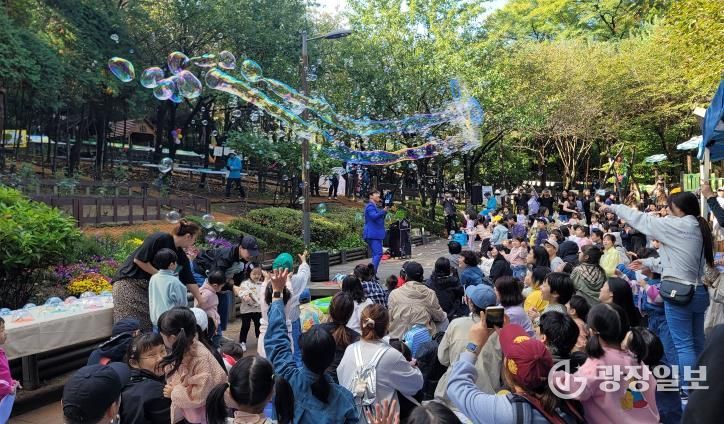 축제 현장에서는 ‘매직버블쇼’를 비롯해 포토존, 숲속 동화마을, 나무 놀이터, 숲체험놀이터 등 자연 속에서 온 가족이 함께 즐길 수 있는 다채로운 프로그램이 운영된다.