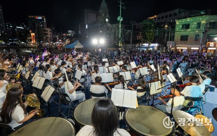 광장일보 주리아 기자 | 서울 성북구 월곡청소년센터가 주최한 KYF뮤즈 청소년 오케스트라 미니콘서트 ‘가을밤 뮤직 페스타’가 지난 9월 7일 성북구청 바람마당 야외무대에서 열렸다. 이번 공연은 청소년 단원들의 순수한 열정과 음악적 기량을 느낄 수 있는 무대가 됐다