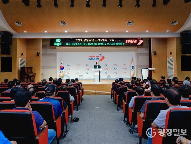 광장일보 나병석 기자 | 오산시는 지난 9일, 시청 대회의실에서 관내 의무관리대상 공동주택 106개 단지의 입주자대표회의 구성원과 관리주체 등 340여 명이 참석한 가운데 ‘2025년 공동주택 소방안전·방범 및 입주자대표회의 운영·윤리교육’을 실시했다고 밝혔다.