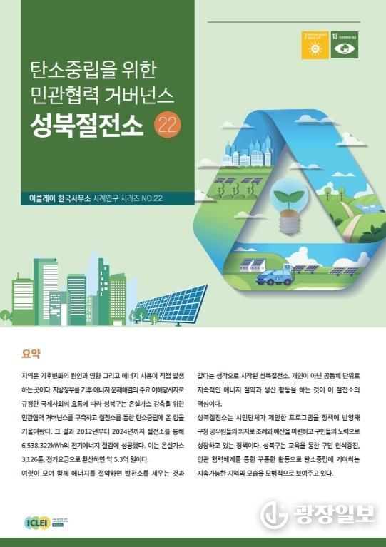 광장일보 주리아 기자 | 서울 성북구의 ‘탄소중립 민관협력 거버넌스 성북절전소’가 지난 9월 이클레이(ICLEI, 자치단체국제환경협의회) 우수사례로 선정되어 국내외 지방정부에 공유·확산됐다.