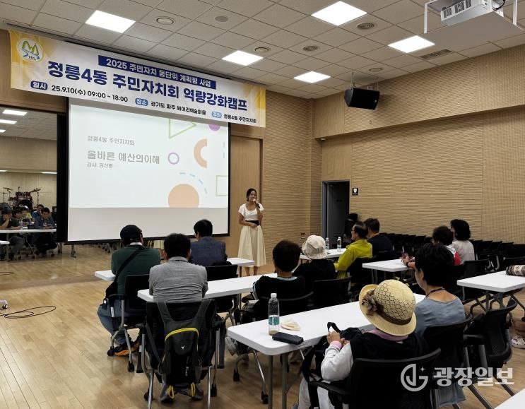 광장일보 주리아 기자 | 서울 성북구 정릉4동 주민자치회가 10일 경기도 파주 헤이리마을에서 역량 강화 캠프를 열었다. 이번 캠프는 자치위원들의 역량을 높이고, 지역 발전을 위해 봉사하는 위원들의 노고를 격려하기 위해 마련됐다. 행사에는 자치위원 29명과 관계 공무원, 지원관 등 32명이 참여했다.