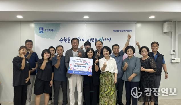 이번 성금은 지난 8월 30일 매교동 행정복지센터 신청사부지에서 열린 ‘2025 매교동 무궁화 축제’ 행사장에서 리본아트 등 6개의 플리마켓과 닭강정 등 5개의 먹거리부스 등을 운영한 수익금으로 마련됐으며, 전달된 성금은 경기공동모금회를 통해 도움이 필요한 취약계층에 사용될 예정이다.