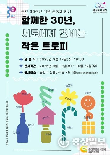 광장일보 주리아 기자 | 금천구는 개청 30주년을 맞아 17일부터 금천구공동체경제통합지원센터에서 특별 기념전시 ‘함께한 30년, 서로에게 건네는 작은 트로피’를 연다고 밝혔다.