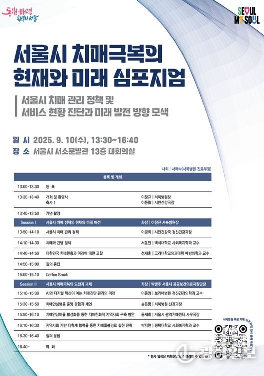 광장일보 주리아 기자 | 서울시 서북병원(병원장 이창규)은 9월 10일 서울시 서소문청사에서, 치매 정책에 적극 관여한 전문가를 모시고 서울시 유관기관 실무자 등 140여 명이 참석한 가운데 치매 심포지엄을 성황리에 개최했다고 밝혔다.