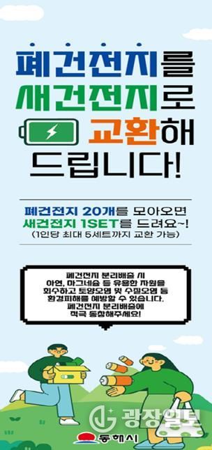 광장일보 이현나 기자 | 동해시가 오는 무릉제 행사기간(9.18.~21.) 동안 시민들의 환경의식 향상과 생활 속 자원순환 문화 확산을 위해 폐건전지 교환행사를 진행한다고 밝혔다.