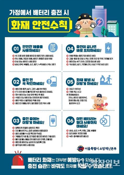 주거시설의 화재예방과 인명피해 저감을 위해 전기이륜차, 전동킥보드 등 전기 이동장치에 사용되는 리튬이온 배터리의 화재예방수칙을 집중적으로 안내하고, '살펴서 대피, 문 닫고 대피' 화재대피요령과'방화문 항상 닫아두기'등 화재안전 행동요령을 지도한다.