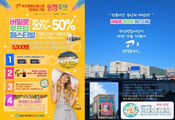 광장일보 주재영 기자 | 부산진구는 부산평화시장 번영회 주최로 개점 55주년 기념 ‘버밀로 루프탑 페스티벌’을 9월 22일부터 9월 30일까지 부산평화시장 옥상에서“ 개최한다고 밝혔다.