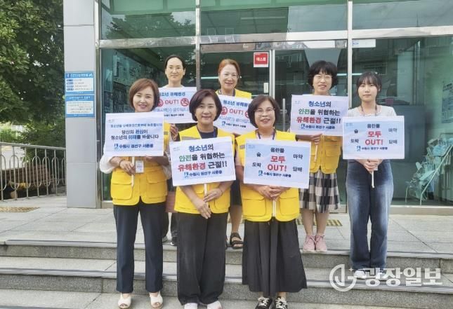 광장일보 나학천 기자 | 수원시 권선구 서둔동 행정복지센터는 지난 15일, 관내 서둔동 일대에서 청소년 유해환경 개선을 위한 캠페인을 진행했다.
