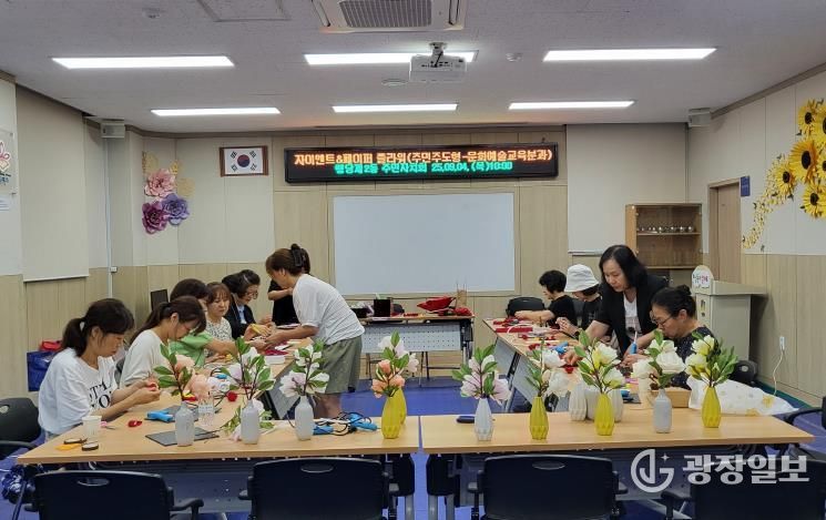 이번 프로그램은 주민자치회 활동지원사업의 일환으로 문화예술교육분과에서 진행했다. 사전 신청을 통해 선정된 주민들은 전문 강사의 지도 아래 자이언트 페이퍼로 플라워(flower), 리스(wreath) 등 공예작품을 만들며 다양한 공예 과정을 직접 체험했다. 프로그램은 총 3회에 걸쳐 매회 다른 테마로 진행돼 참여자 만족도가 높았다.