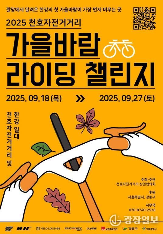 광장일보 주리아 기자 | 서울 강동구는 오는 9월 18일부터 27일까지 10일간, 천호자전거거리와 한강 일대에서 ‘2025 천호자전거거리 가을바람 라이딩 챌린지’를 개최한다고 17일 밝혔다.