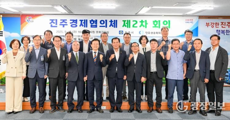 광장일보 주재영 기자 | 진주시는 16일 시청 문화강좌실에서 조규일 진주시장과 허성두 진주상공회의소 회장을 비롯한 지역 경제단체 대표와 기업인 등 24명이 참석한 가운데‘진주경제협의체’제2차 정례 회의’를 개최했다.