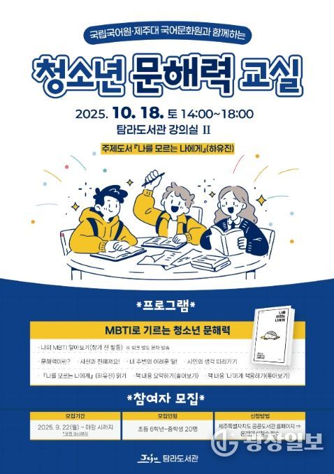 광장일보 주재영 기자 | 제주시 탐라도서관은 제주대학교 국어문화원 지원사업의 일환으로 ‘청소년 문해력 교실’을 운영한다.