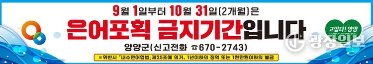 광장일보 이현나 기자 | 양양군이 남대천 향토어종 어족자원인 은어를 보호하기 위해 이달부터 10월 31일까지 은어 포획금지를 홍보에 나섰다.