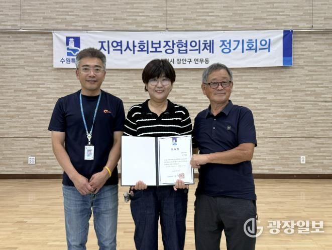 광장일보 나학천 기자 | 수원시 장안구 연무동은 지난 16일, 연무동 지역사회보장협의체 9월 정기회의에서 신규 위원 1명에게 위촉장을 수여했다.