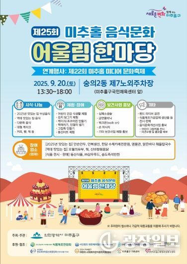한편, 이번 행사는 ‘미추홀 미디어문화축제’, ‘나이스 미추마켓’을 비롯한 여러 행사와 연계돼, 볼거리와 즐길 거리가 한층 더 풍성하게 펼쳐질 예정이다.