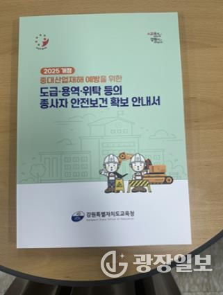 광장일보 이현나 기자 | 강원특별자치도교육청은 교육 현장 내 중대산업재해 예방과 안전보건 관리 수준 제고를 위해 ‘도급·용역·위탁 등의 종사자 안전보건 확보 안내서’ 개정판을 제작하여 도내 698개 교육행정기관 및 공립학교에 배포한다고 17일 밝혔다.