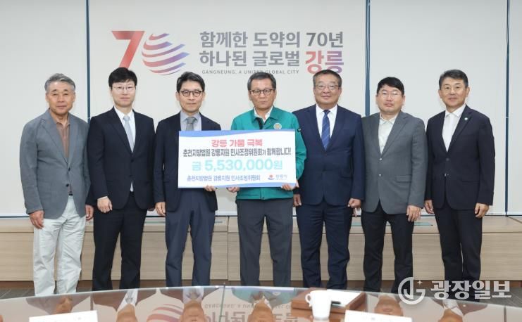 광장일보 이현나 기자 | 춘천지방법원 강릉지원은 17일 강릉시청을 찾아 강릉지원 직원들과 민사조정위원회 위원들이 십시일반하여 모은 성금 5,530,000원을 전달했다.
