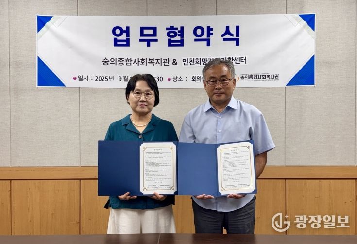 광장일보 주재영 기자 | 인천 미추홀구 숭의종합사회복지관(관장 : 고성란)은 2025년 9월 16일, 인천희망지역자활센터(센터장 : 이종만)와 지역사회 복지 증진과 취약계층 자립 지원 강화를 위한 업무협약(MOU)를 체결했다.