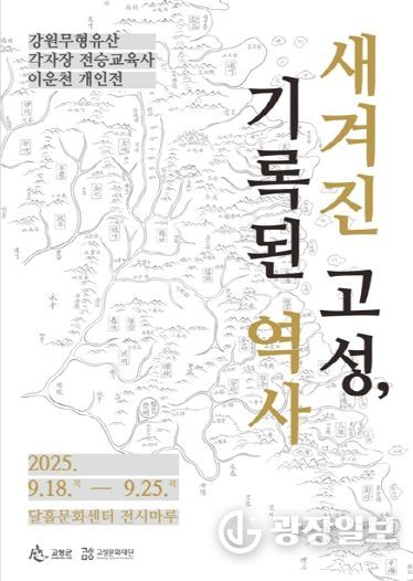 광장일보 이현나 기자 | 고성문화재단은 강원특별자치도 무형유산 각자장 전승 교육사 이운천 작가의 개인전 '새겨진 고성, 기록된 역사'를 9월 18일부터 25일까지 8일간 달홀문화센터 1층 전시마루에서 개최한다.