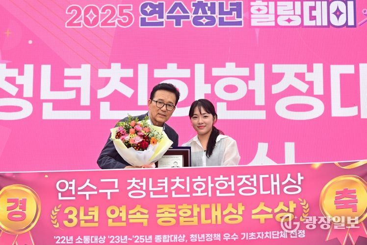 광장일보 주재영 기자 | 연수구가 국회사무처 소관 사단법인 ‘청년과 미래’가 주관한 2025년 제8회 ‘청년친화헌정대상’에서 3년 연속 ‘종합대상’을 수상하는 쾌거를 올렸다.