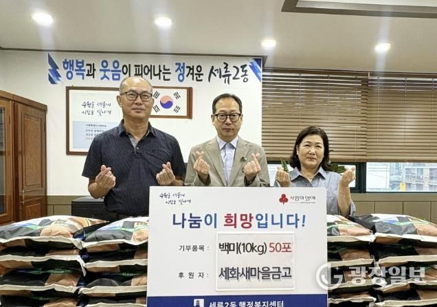 광장일보 나학천 기자 | 수원시 권선구 세류2동 소재 MG세화새마을금고는 지난 17일, 추석 명절을 맞이하여 취약계층을 위한 백미 10kg 50포를 세류2동 행정복지센터에 기부했다.