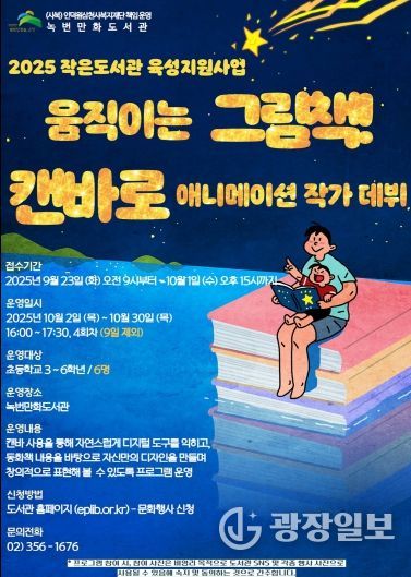 광장일보 주리아 기자 | 서울 은평구는 녹번만화도서관이 2025 작은도서관 육성지원사업의 일환으로 초등학생을 위한 창의 융합 프로그램 ‘움직이는 그림책! 캔바로 애니메이션 작가 데뷔’를 운영한다고 밝혔다.