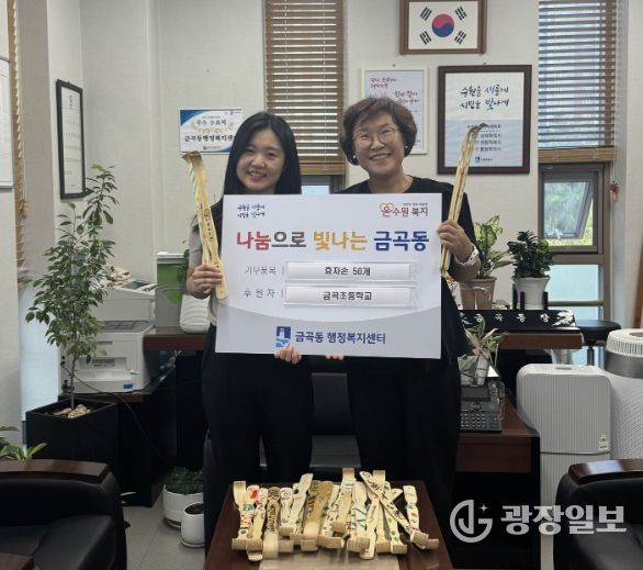 광장일보 나학천 기자 | 수원시 권선구 금곡동 행정복지센터는 지난 18일, 관내 금곡초등학교 5, 6학년 학생들이 직접 만든 효자손 50개를 기부했다고 밝혔다.