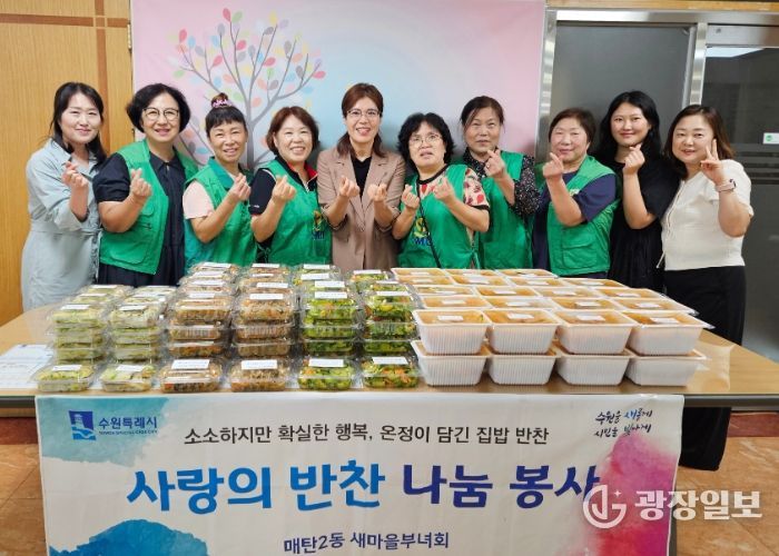 이날 매탄2동 새마을부녀회는 풍성한 나눔을 위해 잡채, 나박김치, 호박무침, 야채전 등 다양한 반찬들을 직접 만들어 관내 홀몸 어르신 등 지역사회 소외계층 30세대에 전달했다.