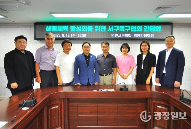 광장일보 주재영 기자 | 인천 서구의회 김춘수 의원(더불어민주당, 연희 검암경서동)은 지난 17일 서구체육회 족구협회[연맹] 회장단과 만나 생활체육 활성화를 위한 간담회를 가졌다고 밝혔다.