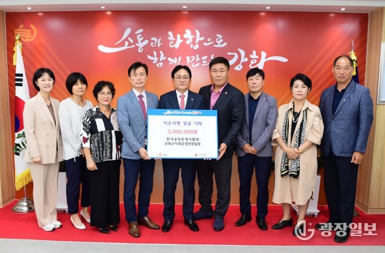 김종혁 한국공인중개사협회 강화군지회장은 “이번 성금이 지역 내 어려운 이웃들에게 작은 도움이 되기를 바라며, 앞으로도 지역사회와 함께하는 다양한 사회공헌 활동을 지속적으로 펼쳐 나가겠다”고 전했다.