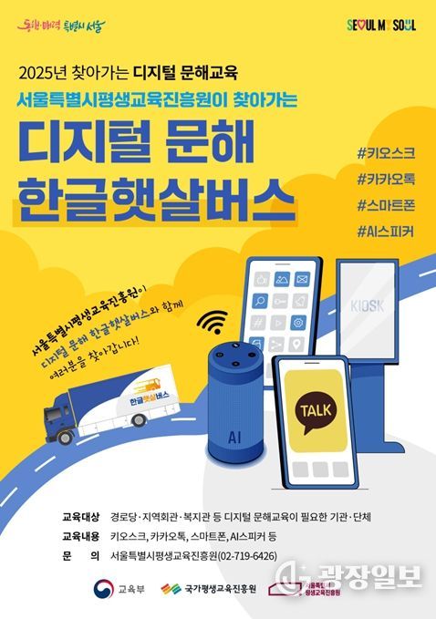 한용진 서울시평생교육진흥원장은 “이번 교육부 장관 표창 수상을 계기로, 약자와 동행하는 디지털 소외 없는 평생학습도시 서울을 실현하기 위해 ‘한글햇살버스’ 사업을 더욱 확대·강화하겠다”고 밝혔다.