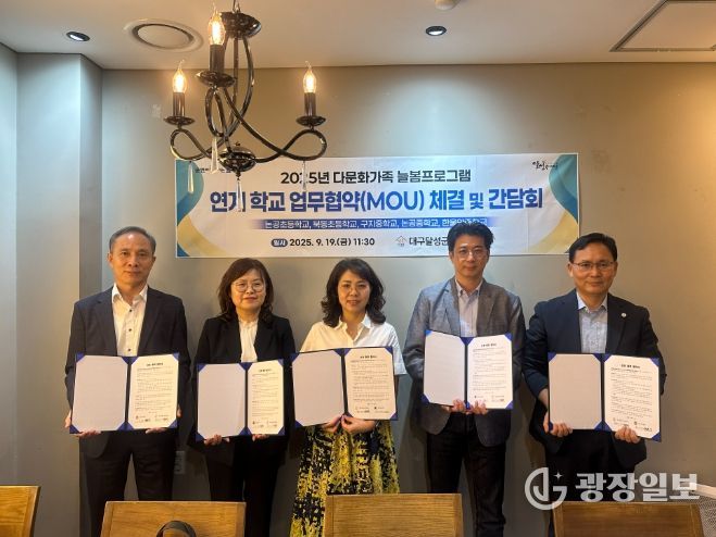 광장일보 주재영 기자 | 달성군가족센터는 지난 19일 달성군 교육특구사업 중 하나인 ‘다문화가족 늘봄프로그램’ 추진을 위해 관내 초등·중학교 4개교와 업무협약(MOU)를 체결했다.