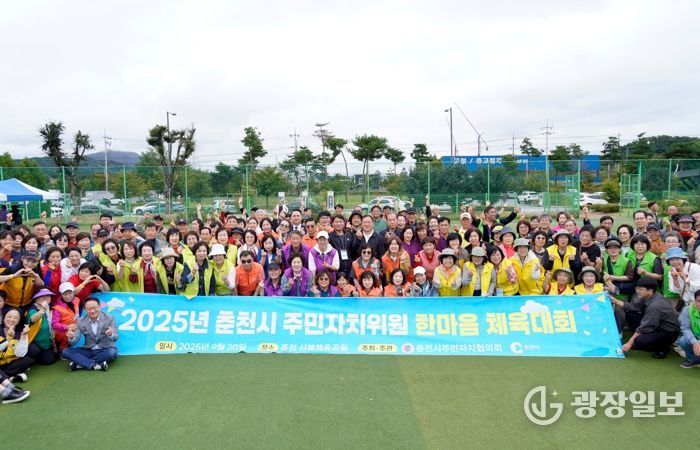 춘천시주민자치협의회가 주최한 ‘2025년 춘천시 주민자치위원 한마음 체육대회’가 20일 신북체육시설에서 성황리에 열렸다. 이날 행사에는 현준태 춘천시 부시장, 김진태 강원특별자치도지사, 신경호 강원특별자치도교육감, 지역 국회의원과 시·도의원을 비롯해 22개 주민자치(위원)회 위원 500여 명이 참석했다.