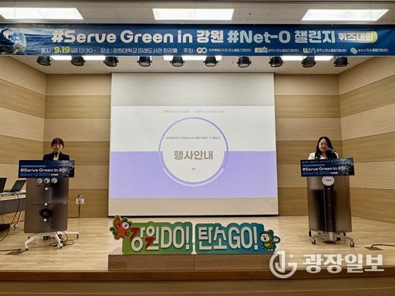 광장일보 이현나 기자 | 강원특별자치도·삼척·원주·춘천 탄소중립 지원센터(센터장 김진영·김주영·전용한·임성린)는 19일, 강원대 정강홀에서 도내 공무원 100여 명을 대상으로 탄소중립 퀴즈대회 '#Serve Green in 강원 #Net-0 챌린지」를 개최했다고 밝혔다.