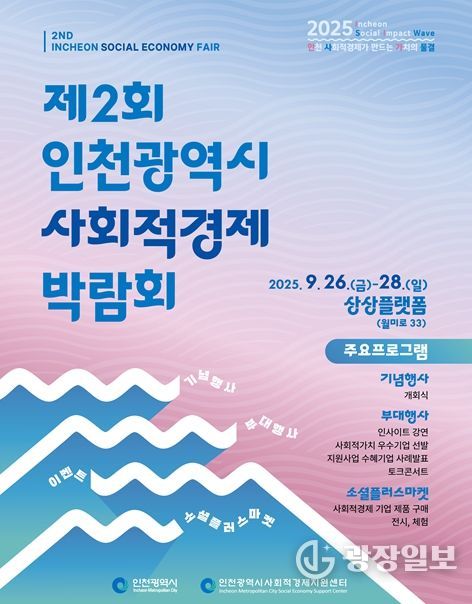 광장일보 주재영 기자 | 인천광역시는 오는 9월 26일부터 28일까지 3일간, 인천 중구 상상플랫폼 웨이브홀에서 ‘제2회 인천광역시 사회적경제박람회’를 개최한다고 밝혔다.