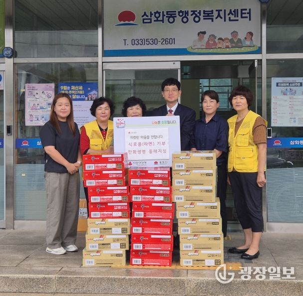 광장일보 이현나 기자 | 한화생명 금융서비스 동해지점(지점장 지종탁)에서 지난 17일 삼화동행정복지센터를 방문하여 라면 2종 20박스를 어려운 이웃들에게 전달해달라며 기탁했다.